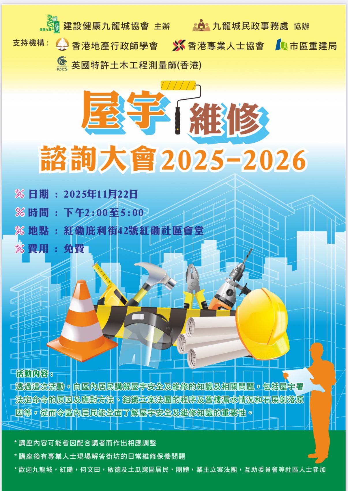 屋宇維修諮詢大會 2025-2026 – 由CICES HK支持 (誠邀會員及社區人士參與是次活動)
